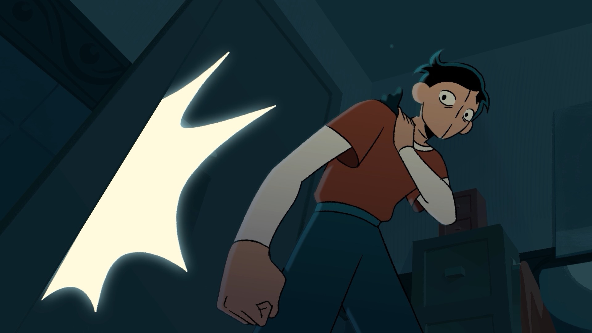 A goo monster sews up a human skin suit to go to their friends house party.